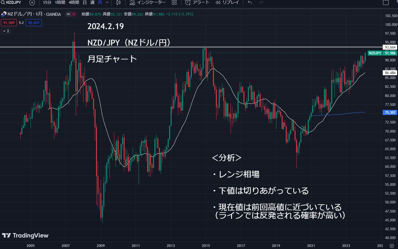 2024.2.19 NZD/JPY(NZドル/円)の見通し・エントリーポイント