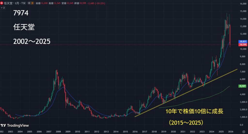 「マリオやポケモンが10年後も世界中で愛され続けている」と信じられるなら、今の任天堂株は長期保有の最良の候補の一つです。