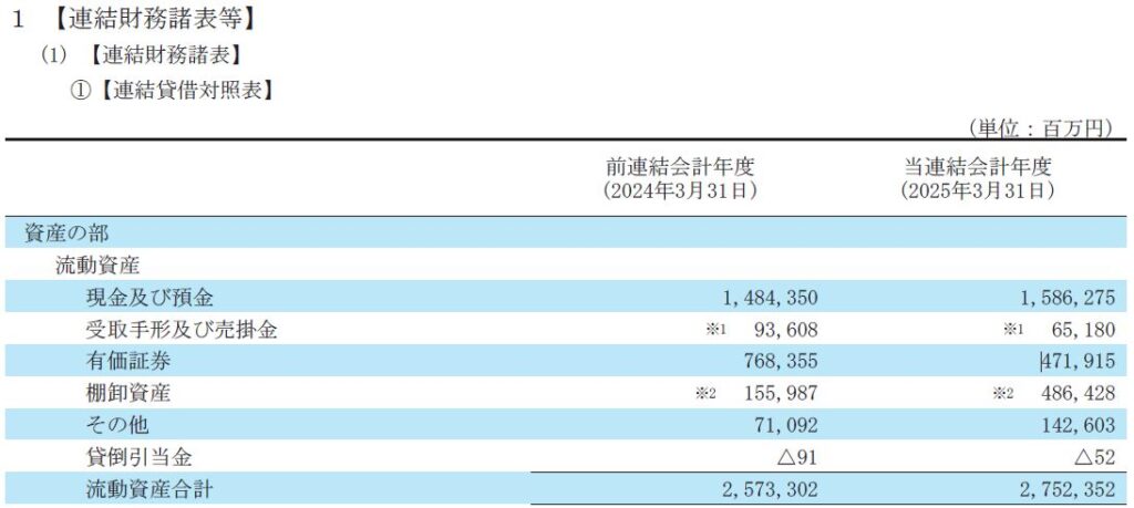 現預金と有価証券を合わせた実質的な手元資金は、約2兆円にのぼります。