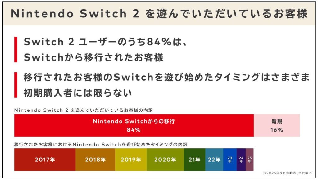 Switch 2を購入したユーザーの84%が、初代Switchからの移行組です。