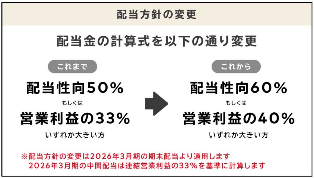 業績が拡大するタイミングでのこの方針変更は、長期ホルダーにとっての「インカムゲイン(配当)」の魅力を爆発的に高めます。