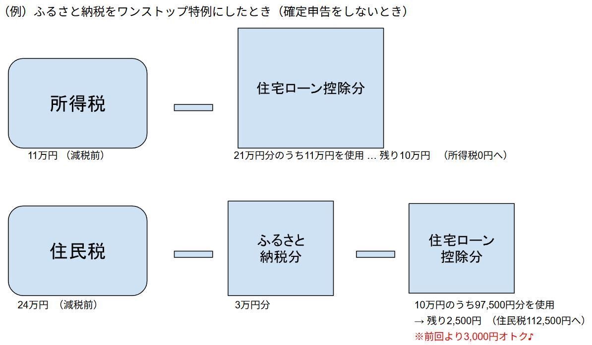 ワンストップ特例を使えば、ふるさと納税は最初から住民税の枠を使い、住宅ローン控除は所得税の枠を使う……というように、お互いの領土を侵さずに済むわけです。