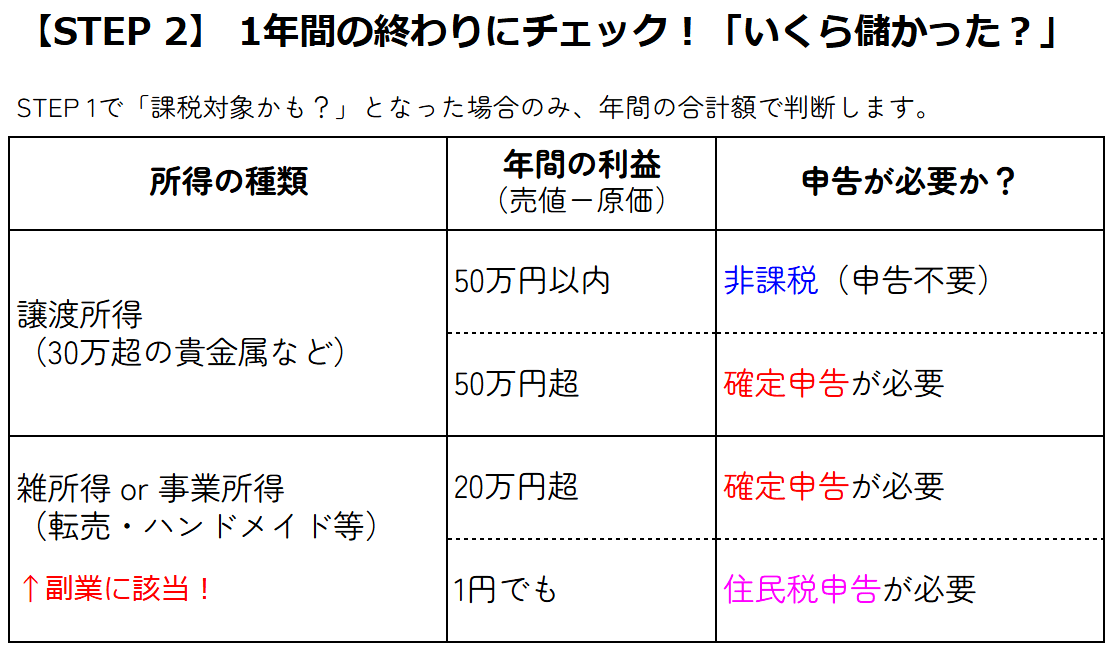2. 貴金属などで50万円以上で売れたときは、確定申告が必要になる